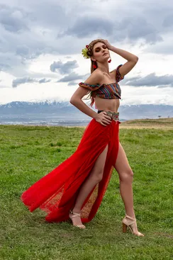 Detailed skin refining using Dodge and burn technique, slight colour grading and a little bit of fun with textures here.